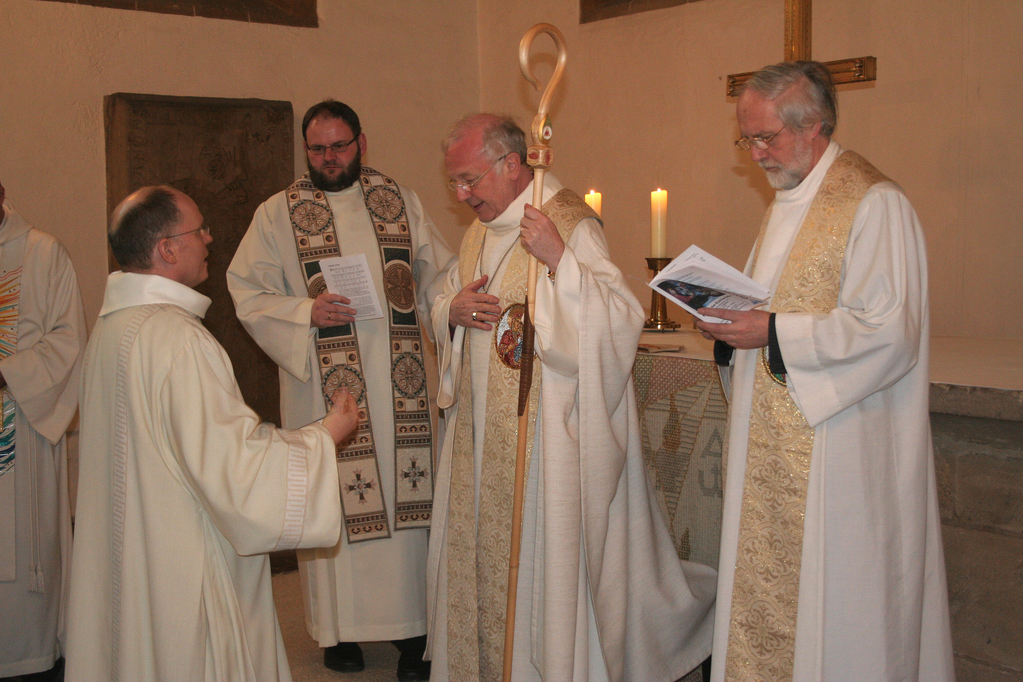 Ich erhalte von Bischof Joachim das Evangelium und den Lese-Segen.