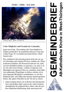 Die neuen Gemeindebriefe der Muttergemeinde Kassel und der Gemeinde West-Thüringen / Erfurt für die Monate März bis Mai 2010 sind erschienen. Sie stehen zum download als pdf-Datei bereit.