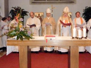 Die Eucharistiefeier wurde vom anglikanischen Bischof Pierre Whalon und dem alt-katholischen Bischof Dr. Matthias Ring geleitet. Bischof Whalon ist Bischof der „Convocation of American Churches in Europe“ und gleichzeitig Assistenzbischof des deutschen alt-katholischen Bischofs (und einer der anglikanischen Bischöfe, die ein eigenes Weblog betreiben; darauf hat er auch zu der Eucharistiefeier gepostet).