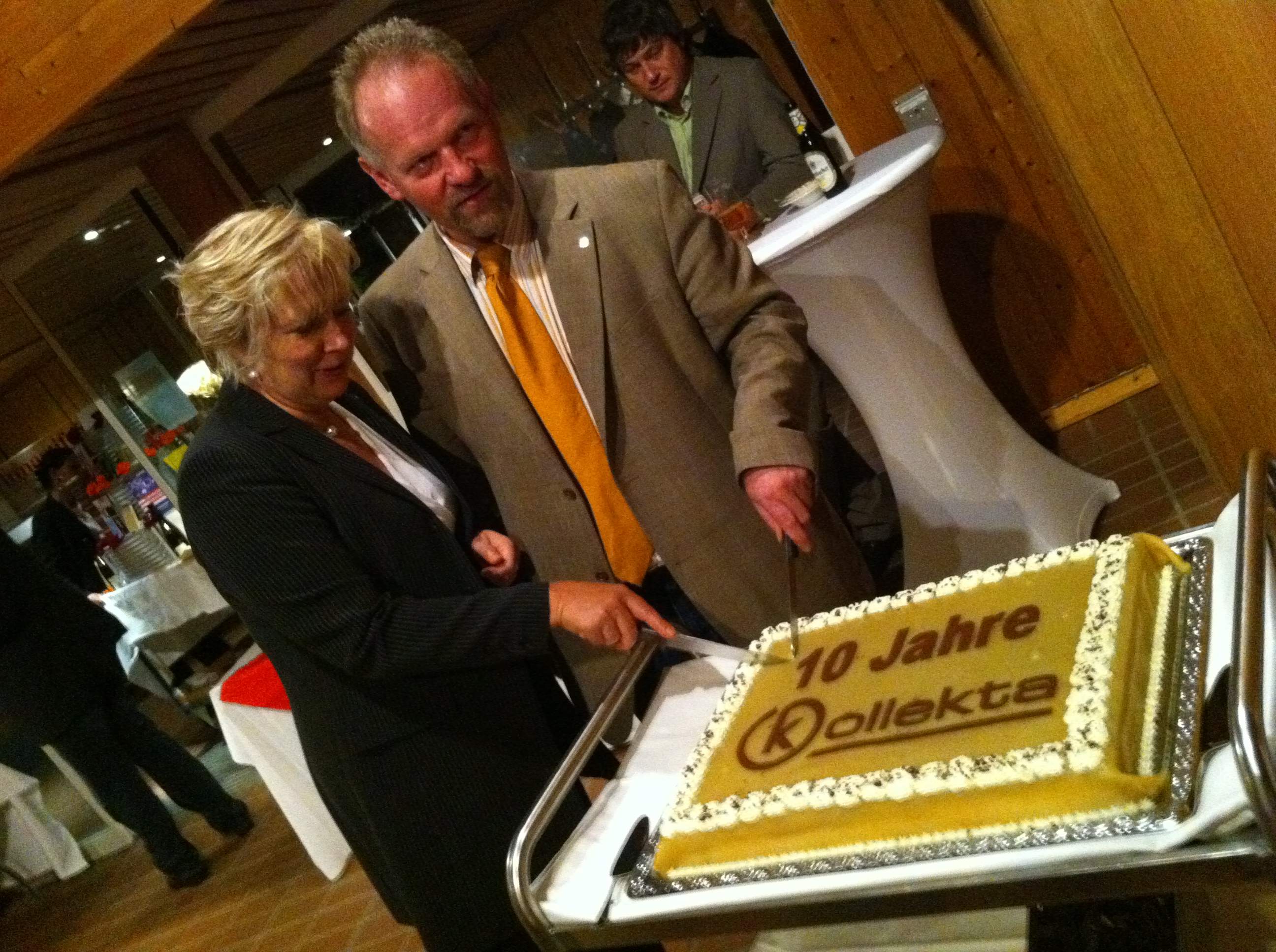 Die Sprecherin der Fachgruppe Kirche, Elke Böhme-Barz und der Sprecher der Fachgruppe, Paul Dalby, schneiden die Geburtstagstorte an