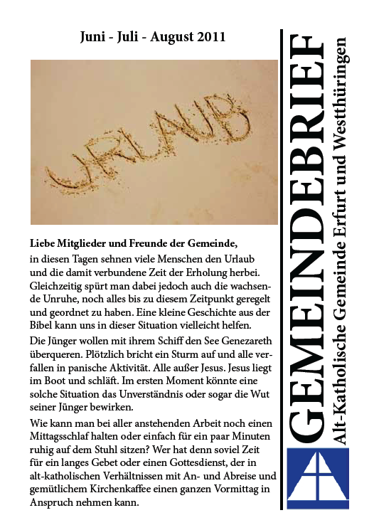 Mit etwas Verzögerung wg. Computer-Schwierigkeiten ist nun der neue Gemeindebrief für die Monate Juni, Juli und August erschienen.