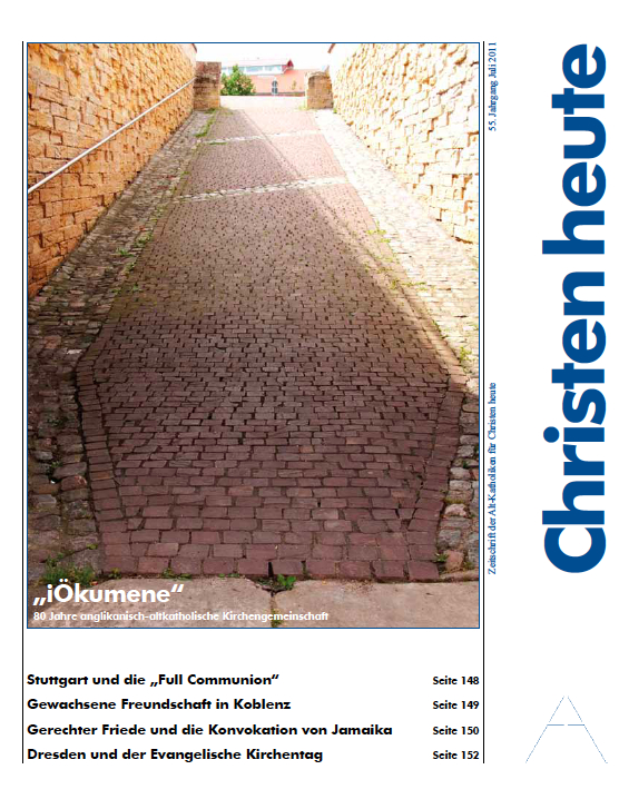 In der nächsten Ausgabe von Christen heute, die zum 01. Juli 2011 erscheint, wird es schwerpunktmäßig um das 80-Jahr-Jubiläum der Kirchengemeinschaft der Alt-Katholischen Kirchen der Utrechter Union mit der Anglikanischen Kirchengemeinschaft gehen. Sie könnte ein interessantes und gutes Vorbild für die ökumenische Annäherung der christlichen Kirchen insgesamt sein.