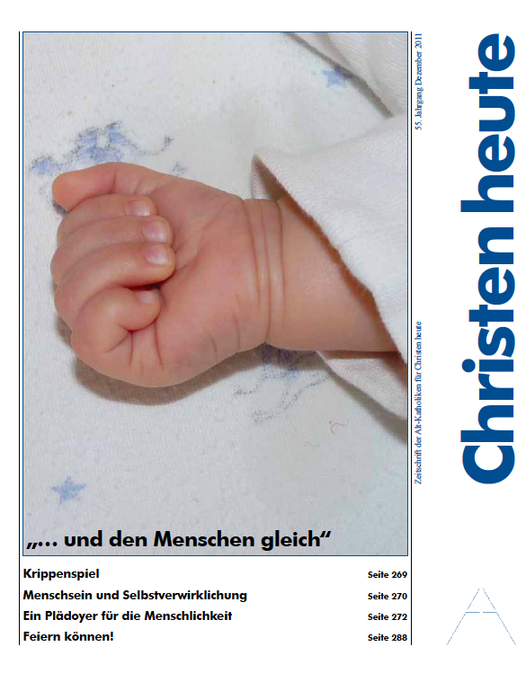 In wenigen Tagen wird die Dezember-Ausgabe der alt-katholischen Monats-Zeitschrift ‚Christen heute‘ in den Briefkästen vorzufinden sein. Sie beschäftigt sich mit dem Schwerpunktthema Menschwerdung.