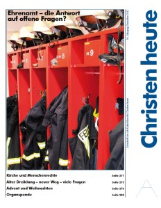 In der demnächst erscheinenden Dezember-Ausgabe von Christen heute wird es vor dem Hintergrund des ‚Internationalen Tages des Ehrenamtes‘ um das Thema ‚Ehrenamt‘ gehen. Darin u.a. ein Beitrag von Bernhard Scholten, der sich mit der Frage des Bürgerschaftlichen Engagementes im Zeitalter des demografischen Wandels auseinandersetzt oder auch ein Artikel von Diakon Dirk Hemmerich, der die These vertritt ‚Ehrenamt verlangt Mut und Zeit‘.