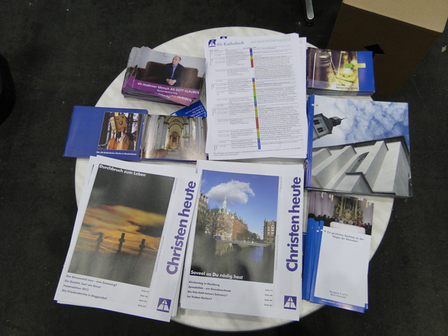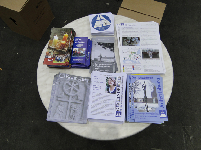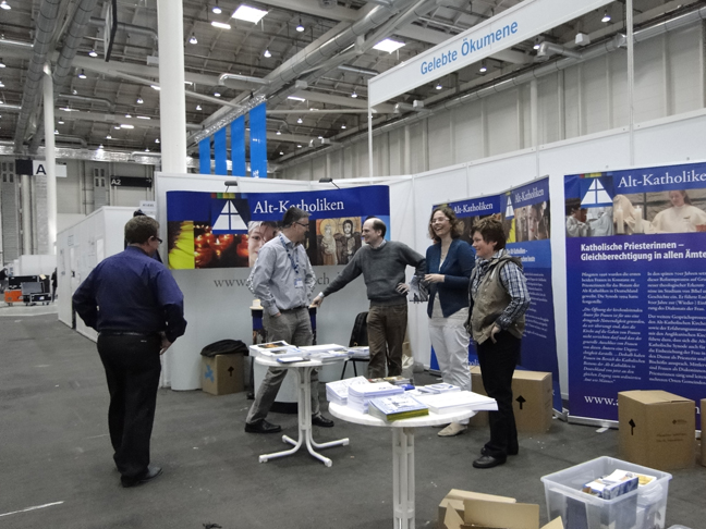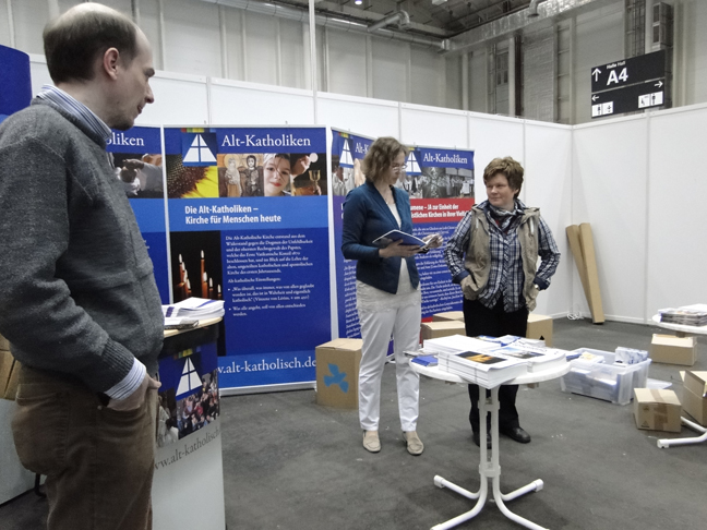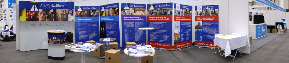 Hier ein paar erste Bildeindrücke vom Aufbau des Standes auf dem Markt der Möglichkeiten. Die Alt-Katholische Kirche gestaltet ihn diesmal gemeinsam mit den Geschwistern von der Anglikanischen Kirche, mit der die Alt-Katholische Kirche seit 1931 in Kirchengemeinschaft steht. Die Gemeinschaft kommt auch durch die gleiche Gestaltung der für den Stand genutzten Roll-Ups zum Ausdruck.