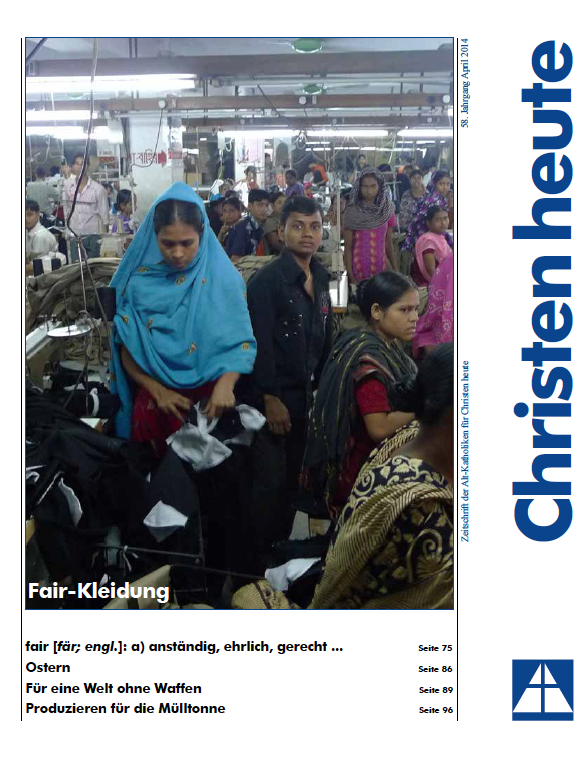 Das Schwerpunktthema der April-Ausgabe der alt-katholischen Monatszeitschrift Christen heute ist die Frage fairer Kleidung.