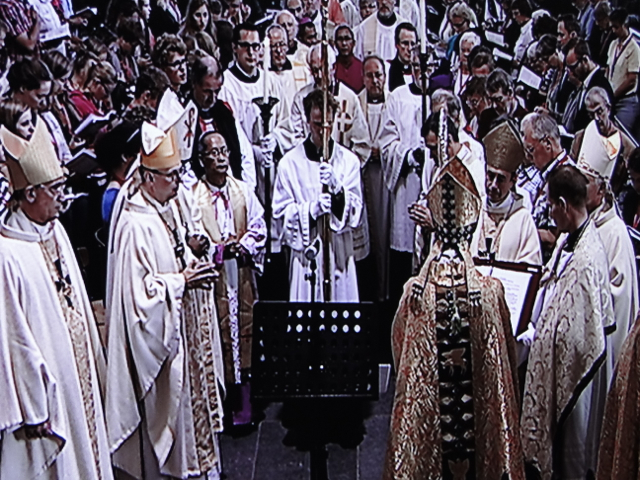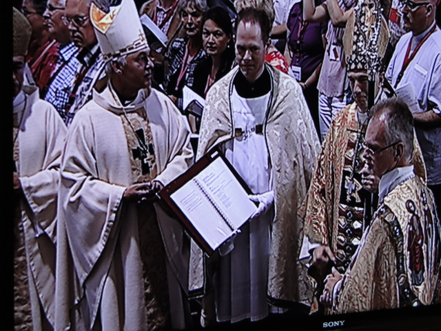 Erzbischof Dr. Joris Vercammen auf seiner KathedraPastorin Annemieke Duurkoop von der Pfarrgemeinde Utrecht