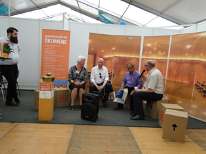 Interessant war heute Nachmittag der Besuch von Erzbischof Ephraim und Bischof Matthias beim Ökumenischen Forum HafenCity, der – unter Anspielung auf die Entstehungs-Geschichte der Philippinischen Unabhängigen Kirche – unter dem Thema „Wie aus einer Gewerkschaft eine Kirche wird“ stand. Zwar blieben nicht sehr viele Leute stehen, aber es war trotzdem eine spannende und interessante Gesprächsrunde.