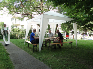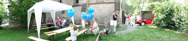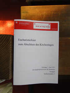 In diesem Zusammenhang möchte ich aber vor allem nochmal ein dickes DANKESCHÖN loswerden: Sowohl an das Team, welches am Stand der alt-katholischen Kirche mit großem Engagement und vielen, vielen Schweißperlen zahllosen Besucherinnen und Besuchern Rede und Antwort stand. Aber auch dem Mitgliedern der AG Kirchentag in der Pfarrgemeinde Stuttgart sowie den dort darüber hinaus engagierten Gemeindemitgliedern, die ein tolles Programm auf die Beine gestellt haben und trotz allem Streß und aller Hektik immer fröhlich und herzlich geblieben sind. Und auch den vielen Helferinnen und Helfern auf dem Kirchentag, die im Hintergrund gewirkt haben. Vor allem die zahlreichen Pfadfinderinnen und Pfadfinder, ohne die der ganze Kirchentag u.a. in dem bei so vielen Menschen üblicherweise entstehenden Abfall ersticken würde.