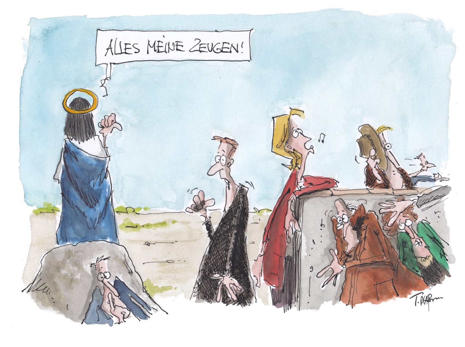 Heute ist der Karikaturist Thomas Plaßmann auf Einladung des Alt-Katholischen Bistums auf dem Kirchentag in Berlin. Er wird um 10.30 Uhr auf dem Markt der Möglichkeiten in Halle 1.1b auf dem so genannten MarktPlatz einen Vortrag über seine Arbeit halten und dabei auch live zeichnen.