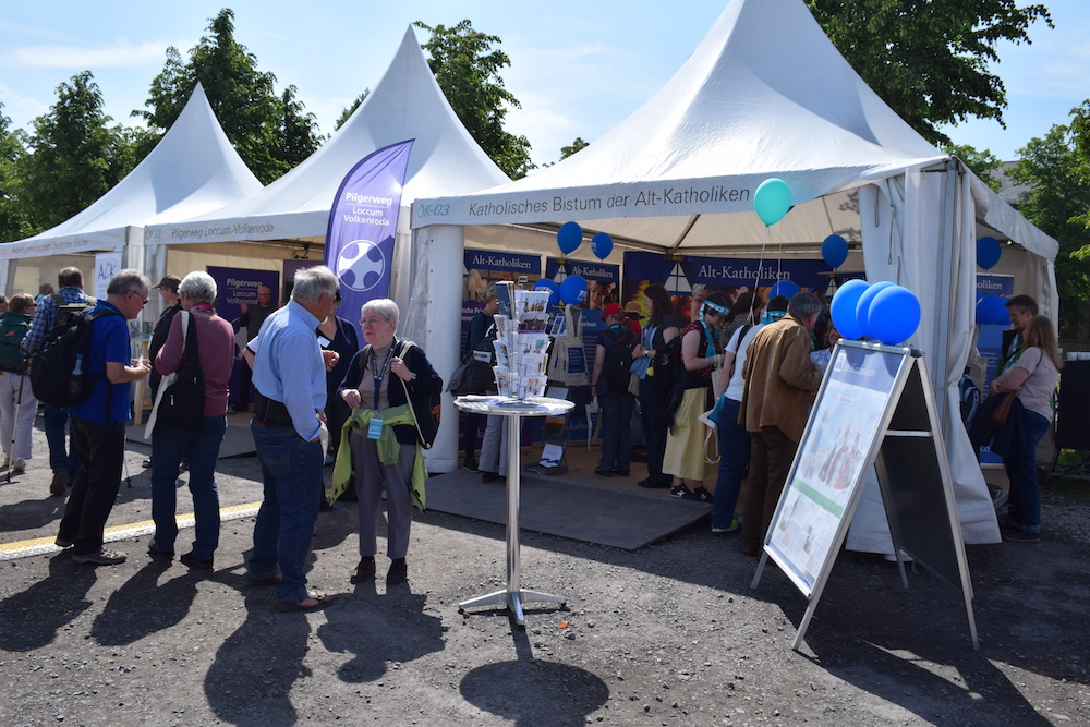 Beim diesjährigen Katholikentag in Münster kann das deutsche Bistums auf zahlreiche Mitarbeitende und deren Engagement zählen. Immer sind sechs bis sieben Alt-Katholikinnen und Alt-Katholiken am Stand und stehen für Gespräche und zum Austausch mit interessierten Standbesuchenden bereit.